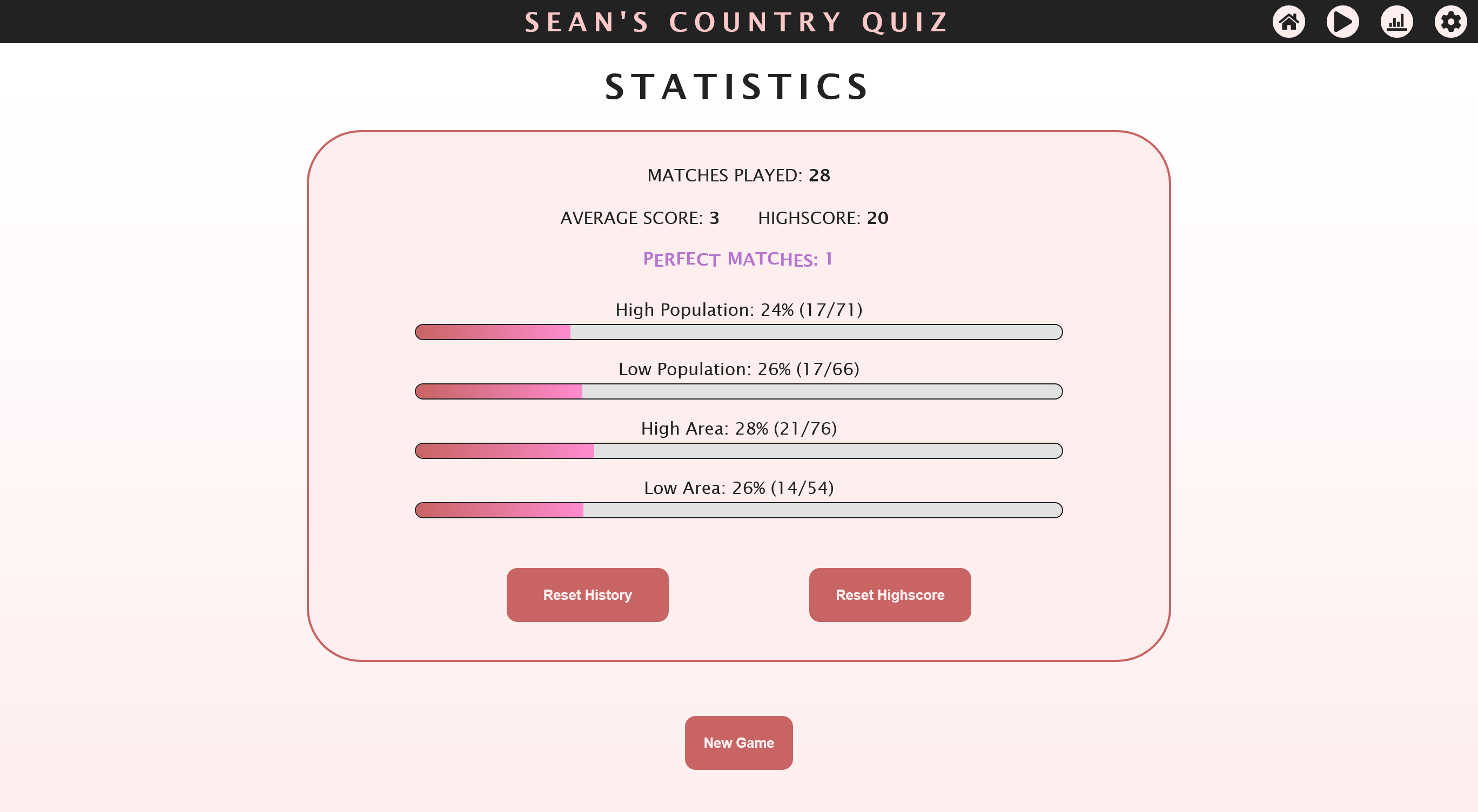 Includes player statistics and a match history so players can see themselves improve their geography knowledge